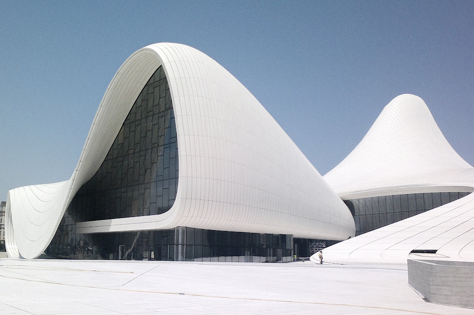 The Heydar Aliyev cultural center in Baku is designed by Zaha Hadid. One of the brightest architects of our time, Zaha Hadid was the first women to be awarded the architectural “Oscar” – Pritzker Architecture Prize. This fantastic snow-white building shaped