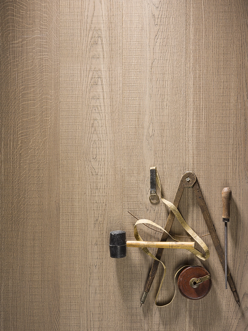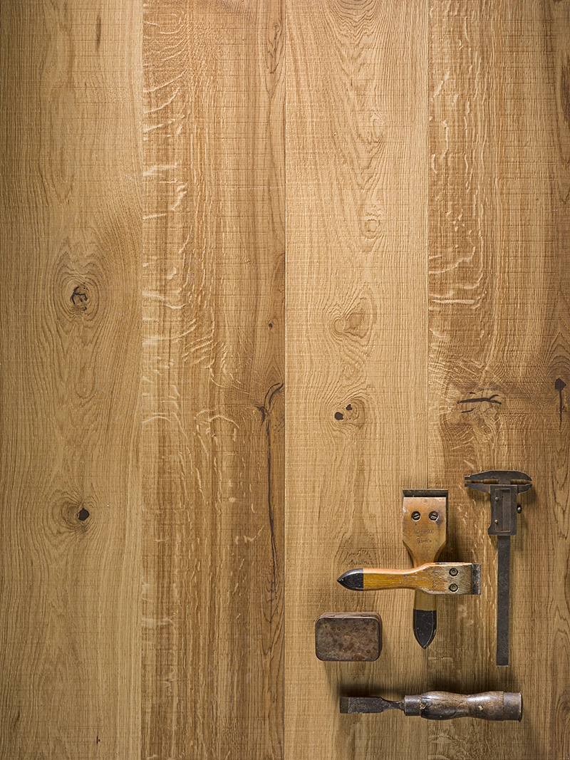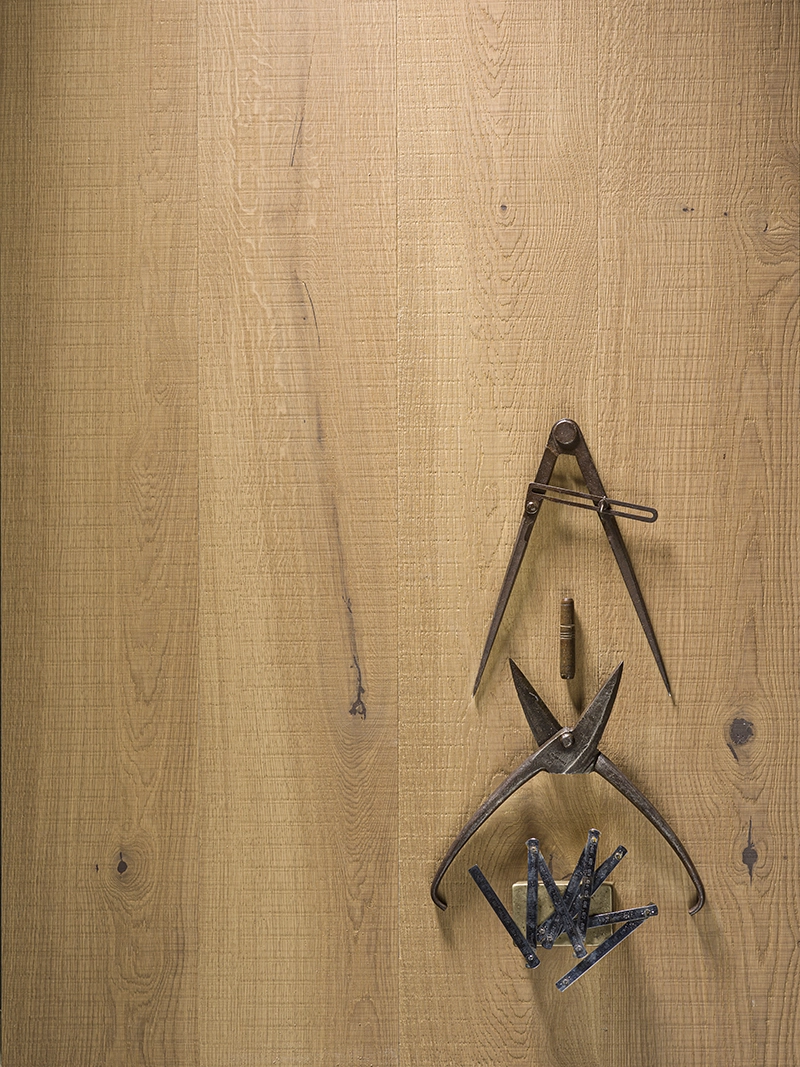 Maximum naturalness of natural wood for original interiors. The transverse notch applied to the parquet plank unusually accurately imitates saw marks, creating the impression of a hand-crafted board – with an expressive texture, picturesque knots, and unique wood patterns.