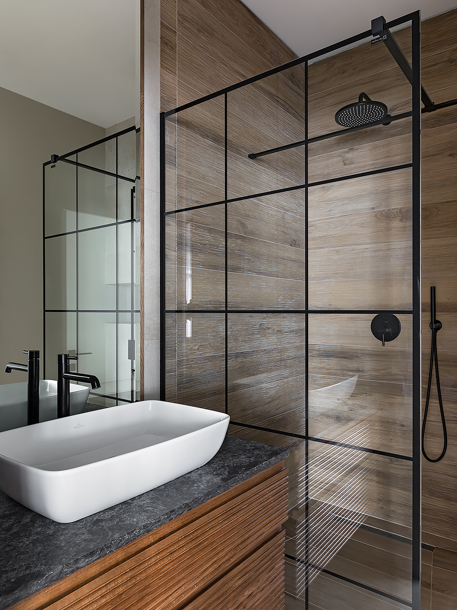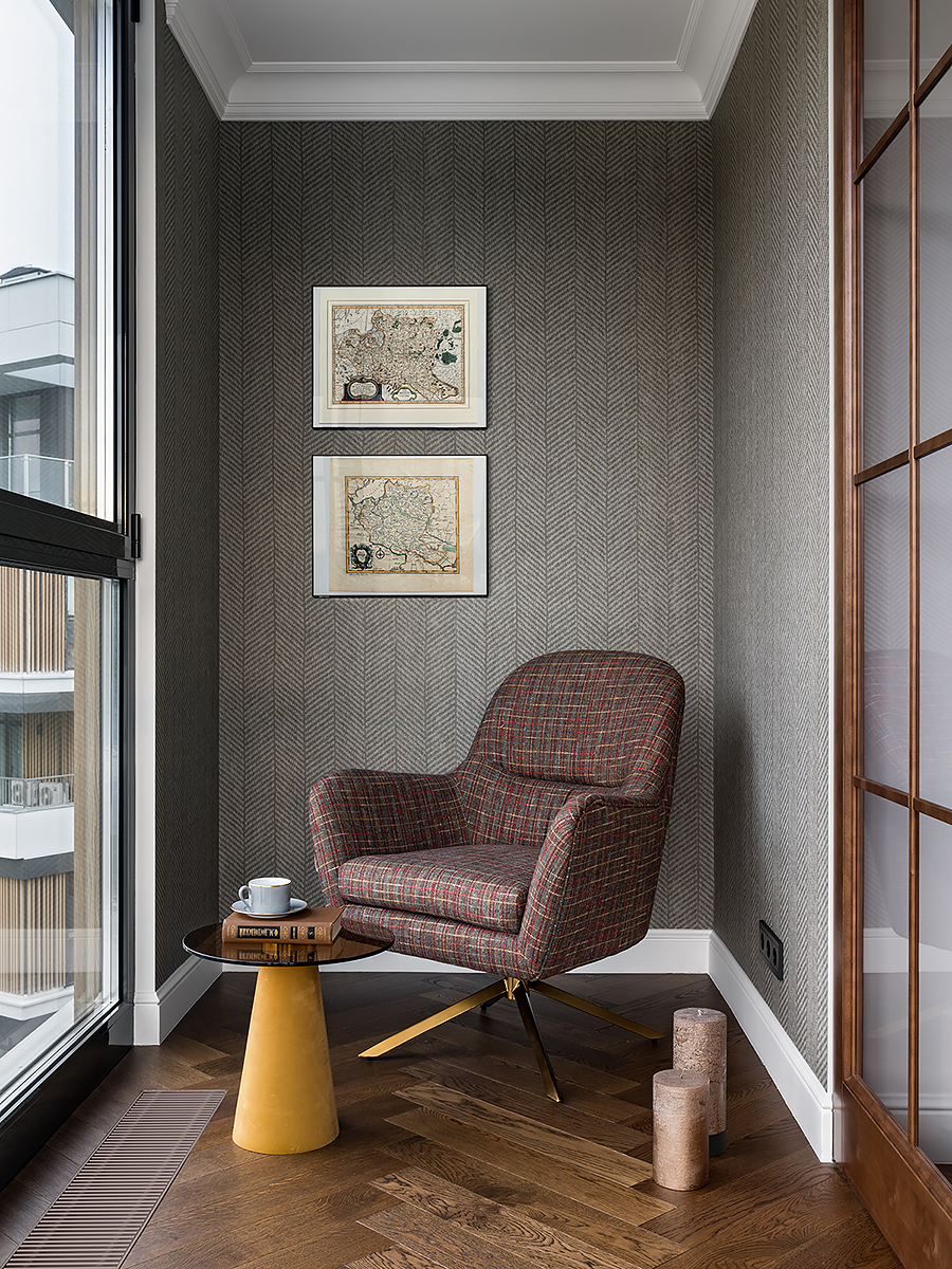 All in all, it’s a stylish eclectic interior design where dashes of classic are balanced out by modern furniture and signature elements. And manly palette is softened by warm tones of the wood.