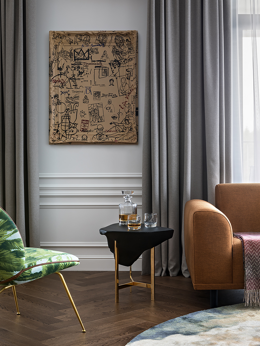 “My signature move is bold accent colours, daring but comfy solutions. My principle is that any desires of the customer, however unthinkable, can be included in the design and look stylish and appropriate. It’s a professional challenge. While it’s a very manly design, it has a lot of warmth and homely charm. I’m proud of my team’s work on this project.”