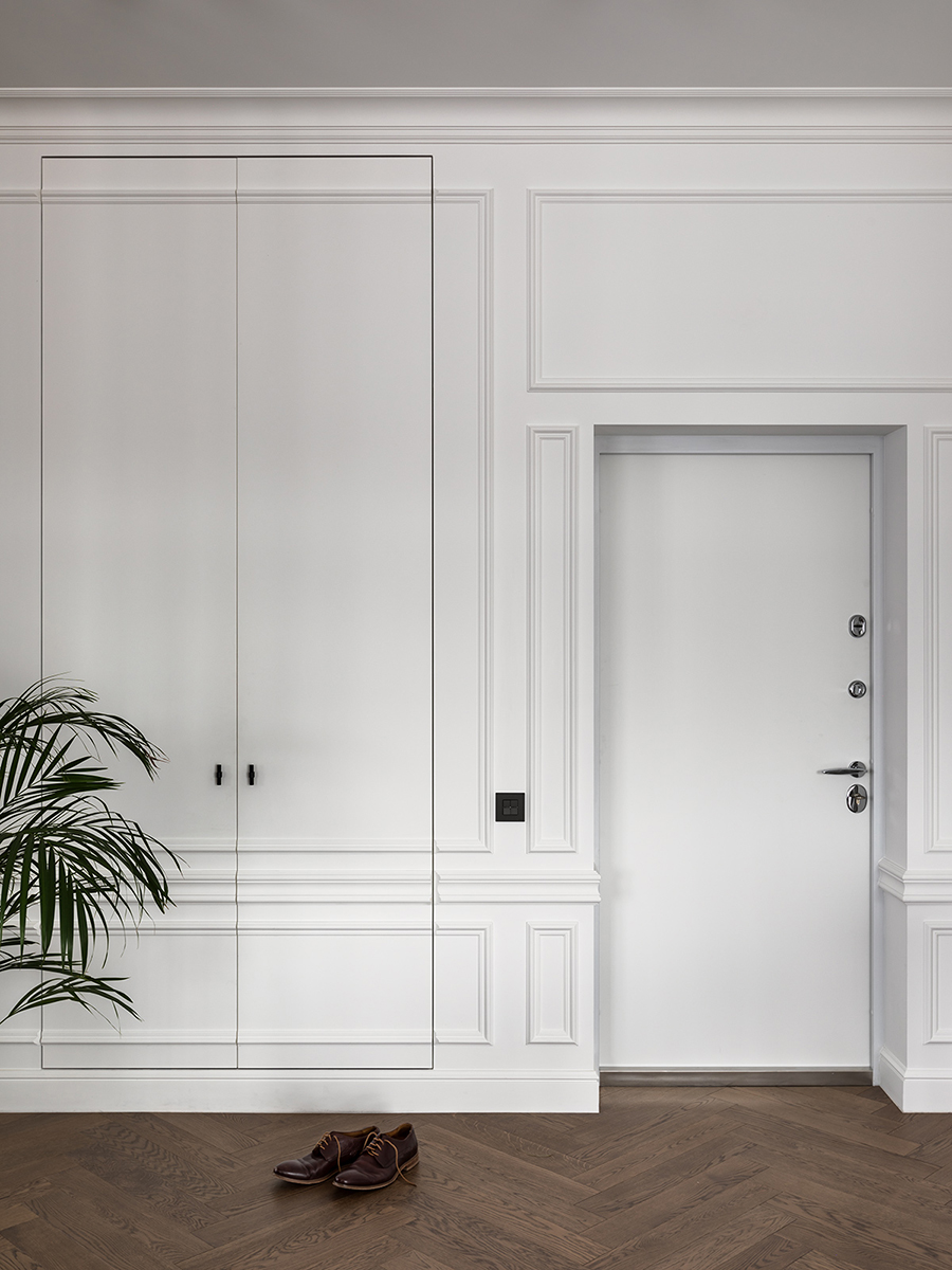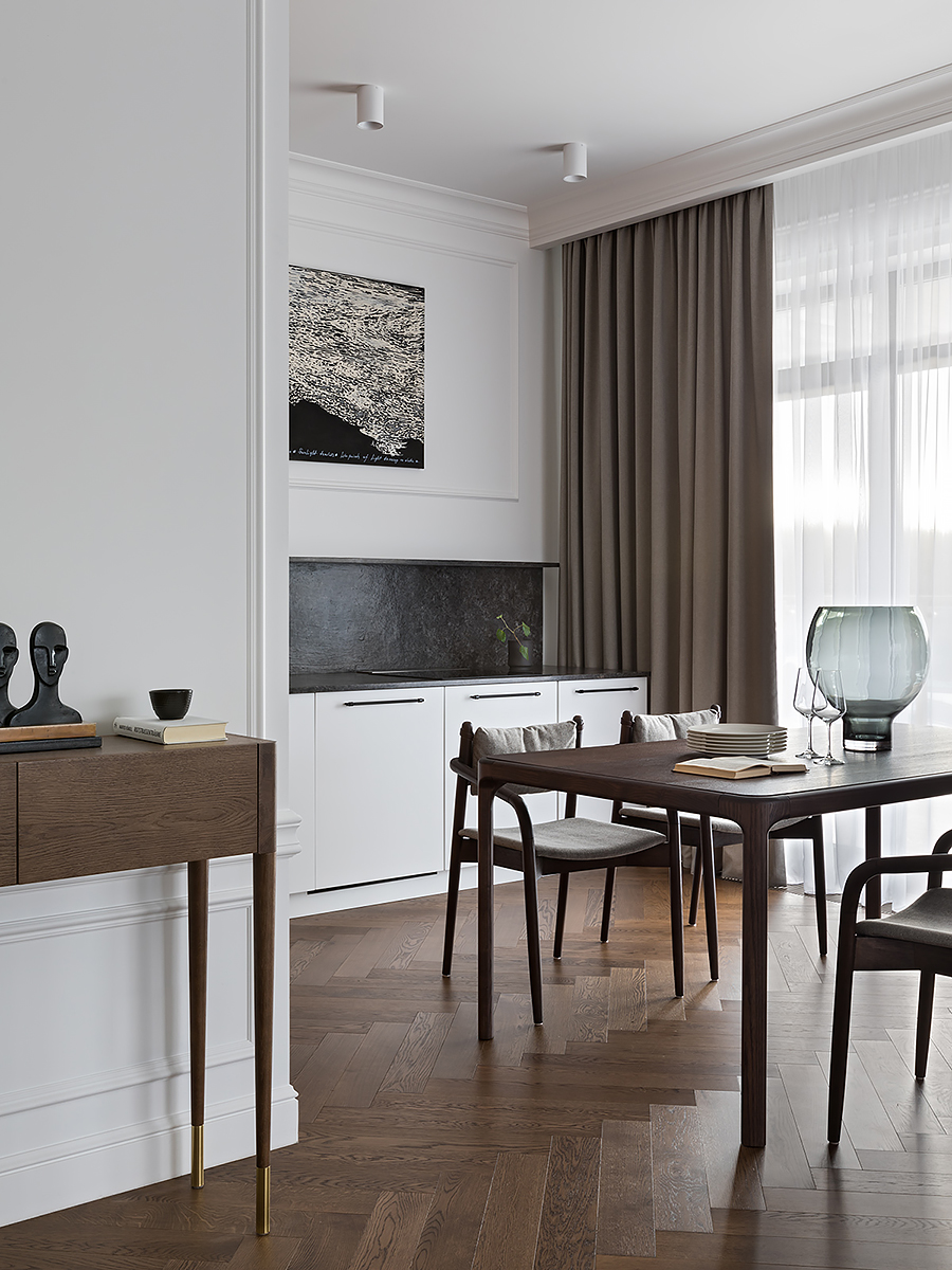 The owner of this apartment situated in a countryside apartment complex on the shores of the Minsk Sea is a successful young man who spends a lot of time at work and wanted to create a light and comfortable, truly homely space. Main points for the customer were a separate bedroom, lots of light and handy storage spaces.
