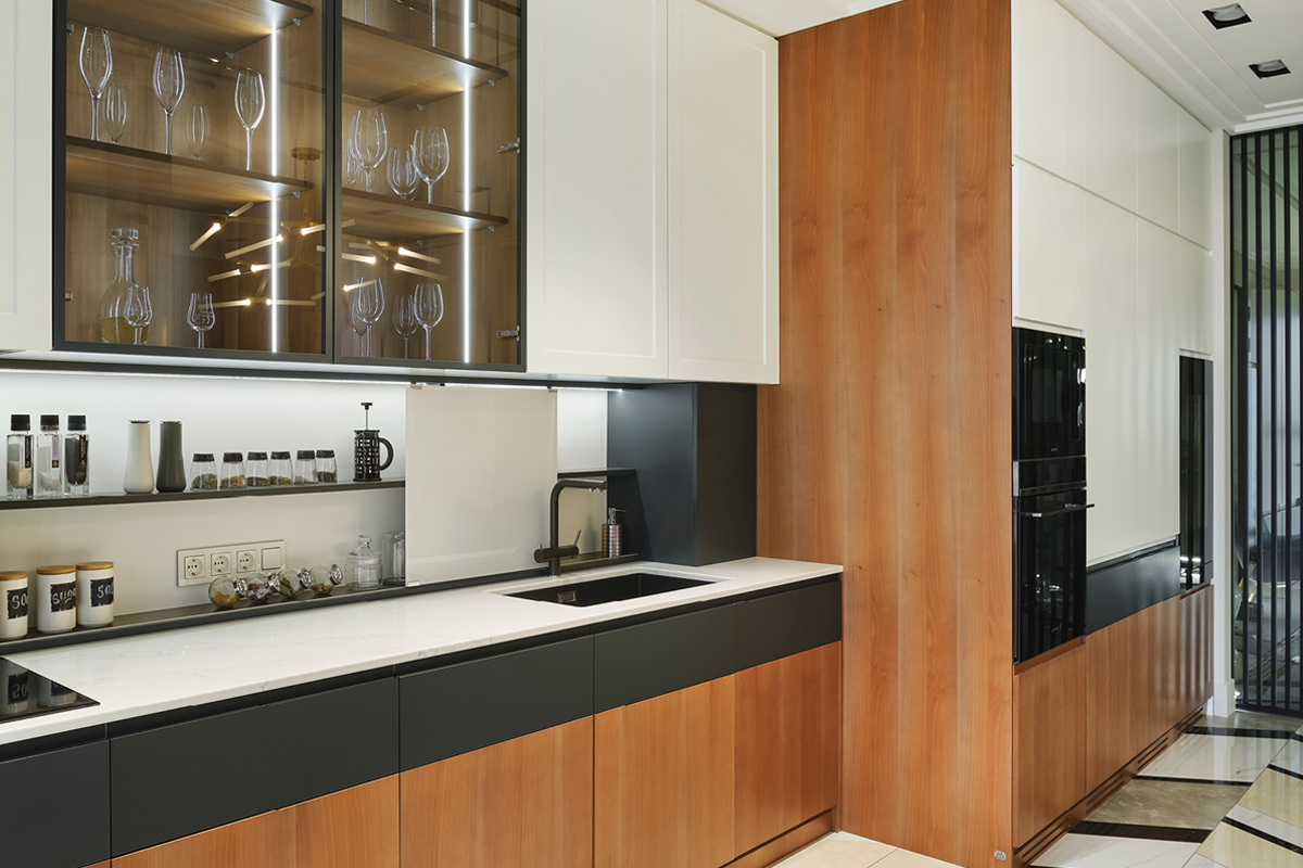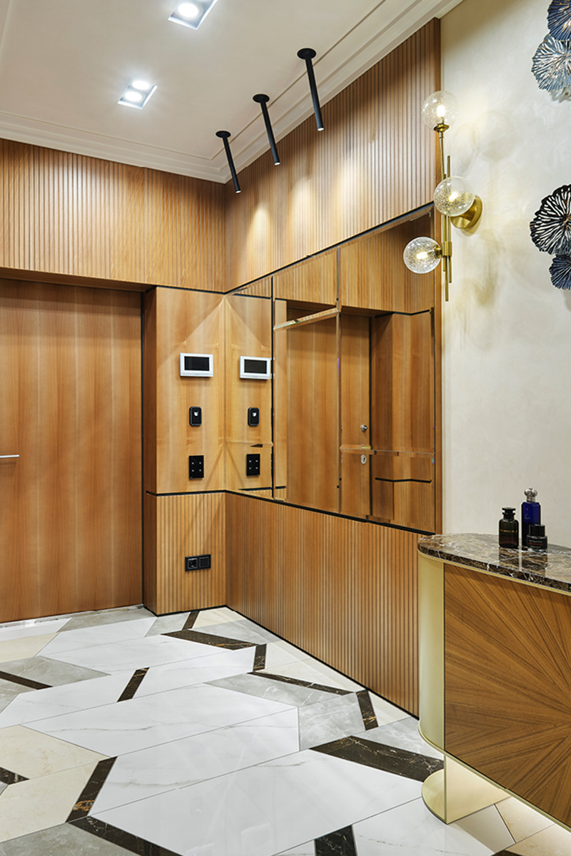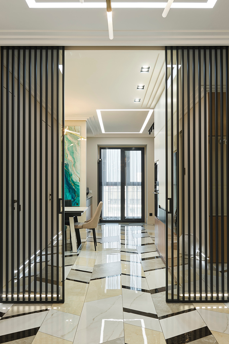This project by Design Studio Maria-Art has no flowing lines or blurred tones: everything is sharp and stylish and geometry fits comfortably with extravagant opulence.