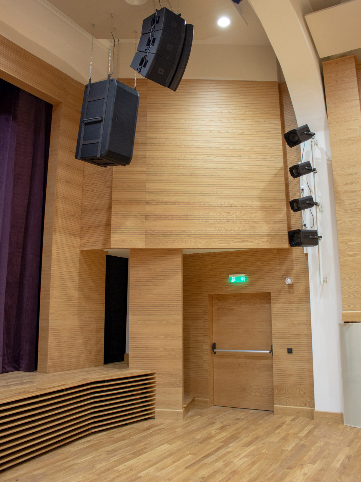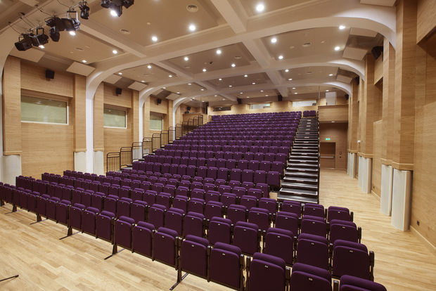 Special attention was paid to the theater hall during the large-scale reconstruction of the ACS academic campus. First of all, it was necessary to achieve high acoustic performances of the hall. In combination with acoustic panels Coswick applied a number of additional technical solutions and adjusted the configuration of the hall.