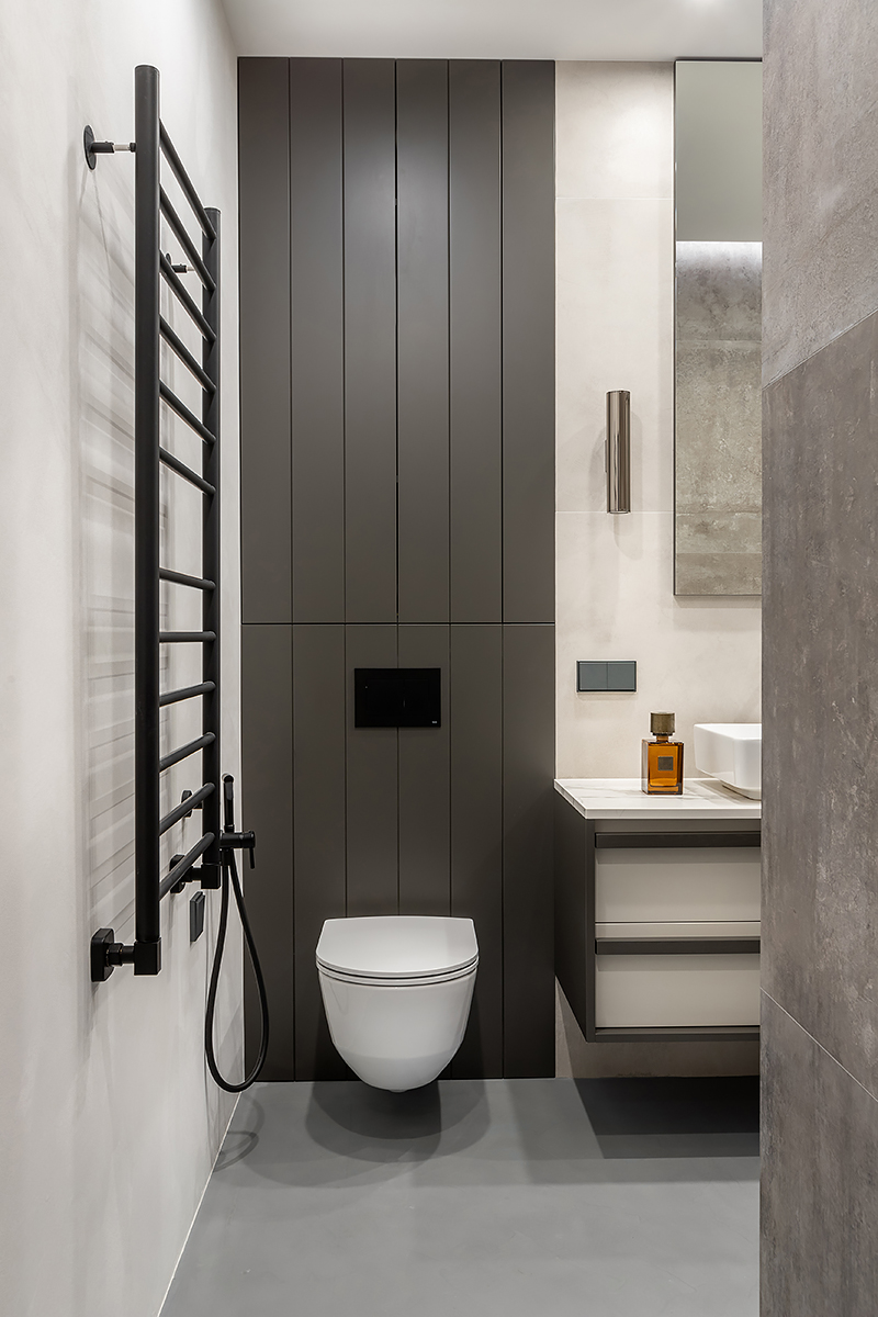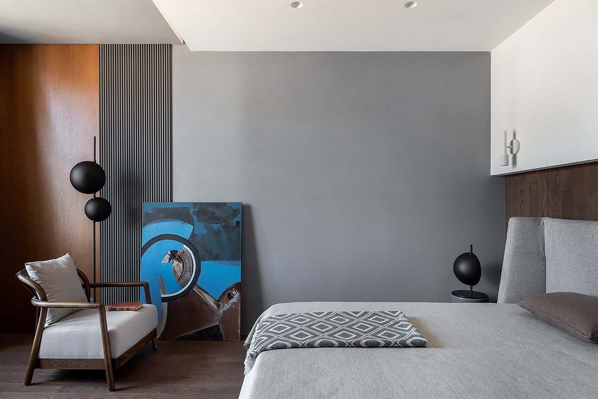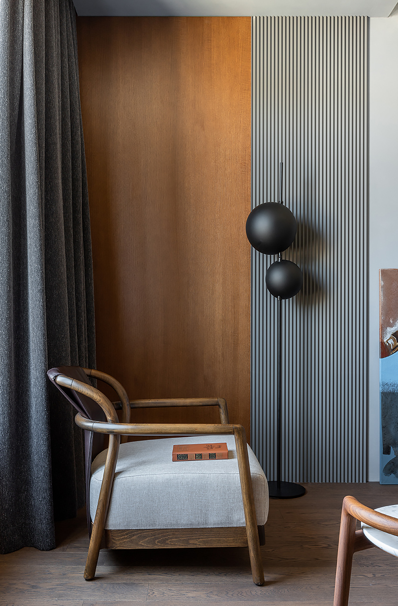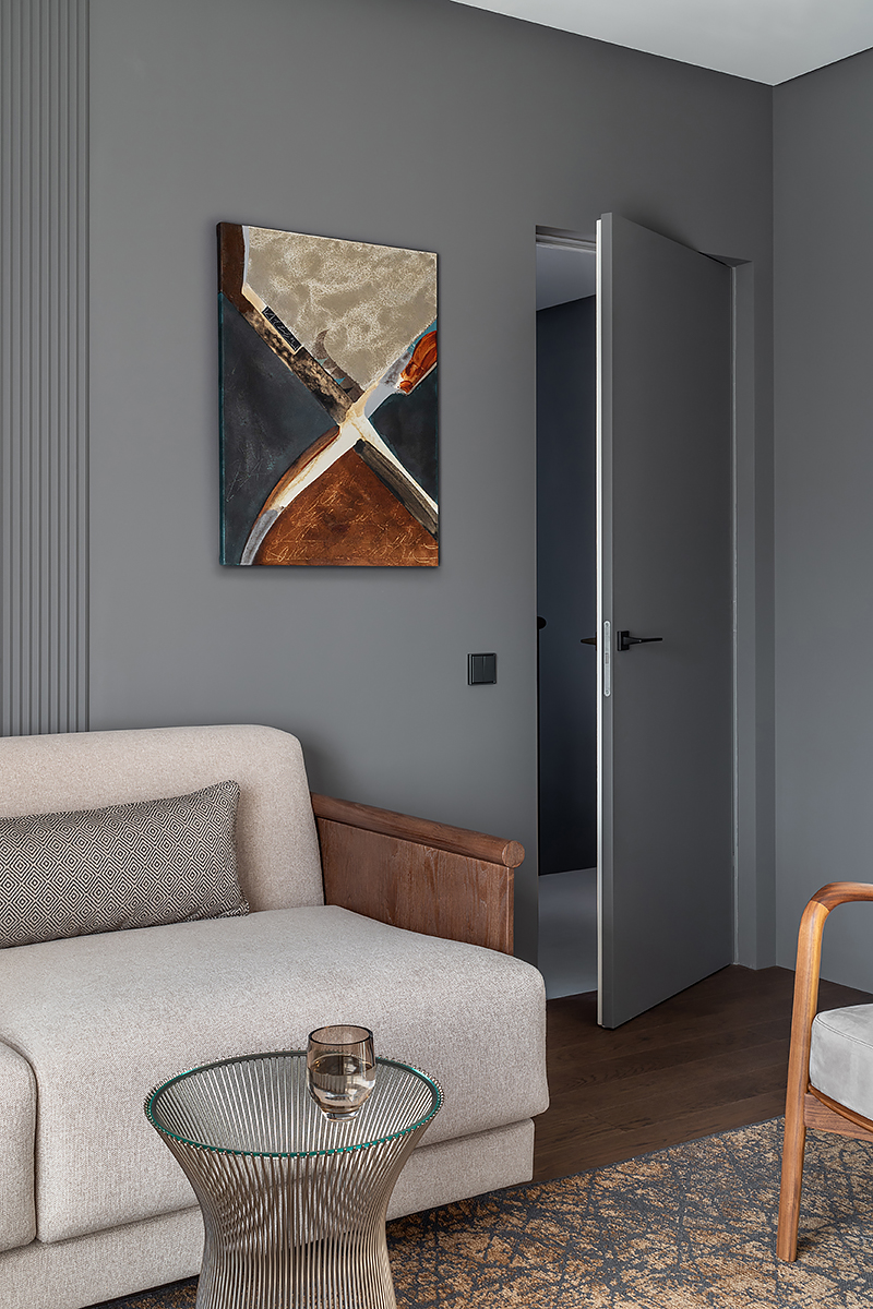 Modern minimalism as a basis for unusual, expressive art objects and author’s painting. This is what determined the main style of the living space. The concept was based on such materials as concrete and plaster, natural wood and stone. The interior had to be as natural as possible, reflecting the architectural image of the residential complex and the beauty of the surrounding nature.