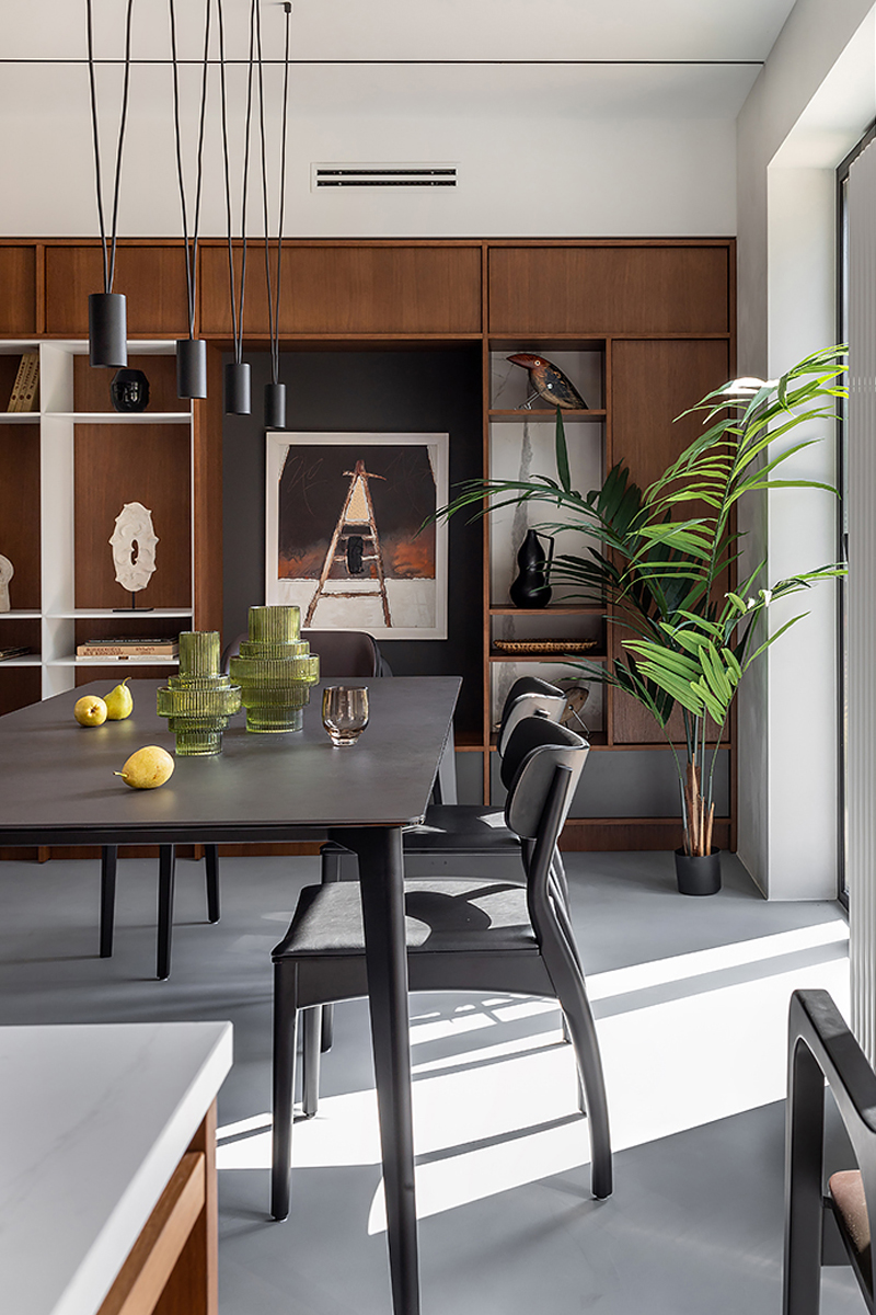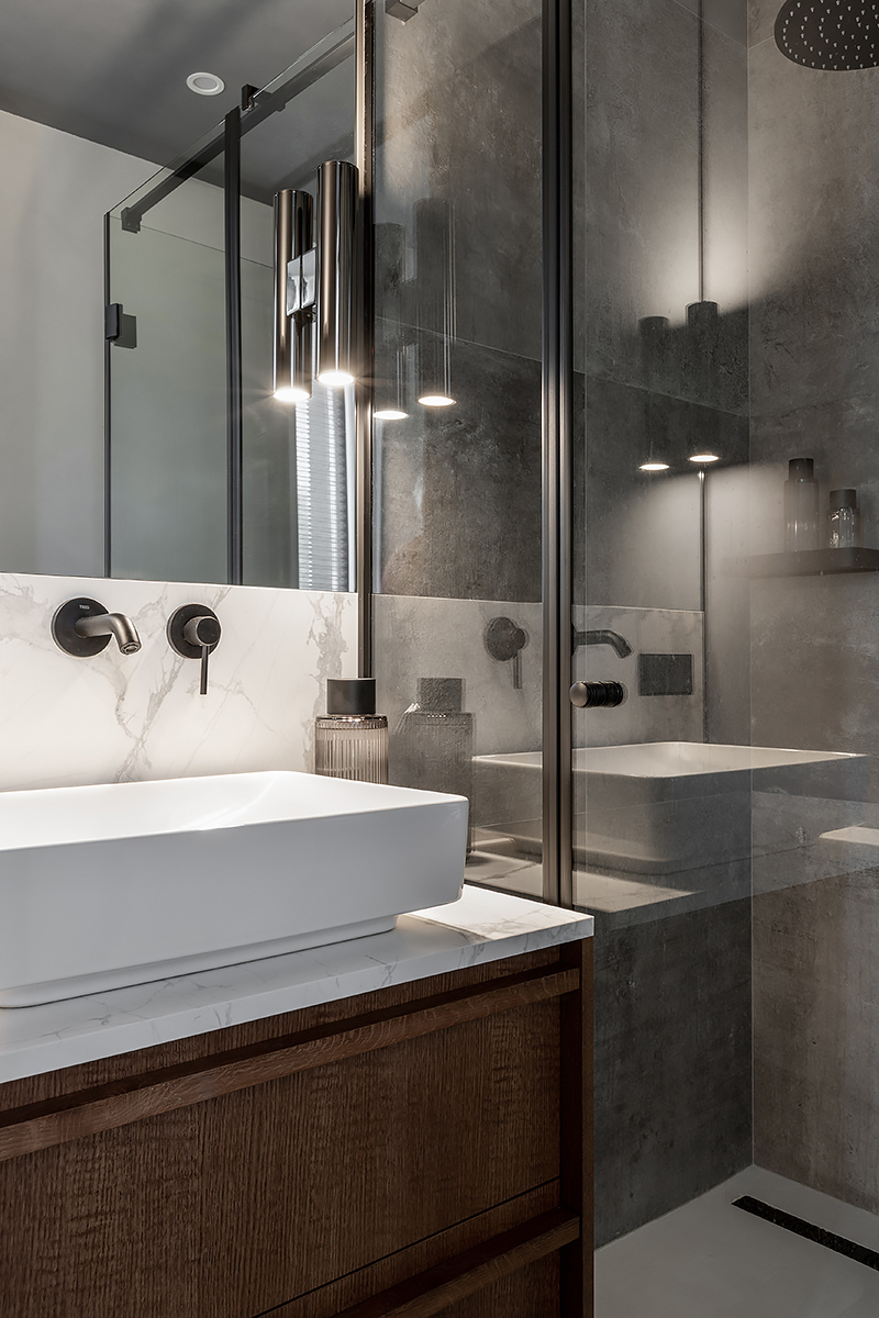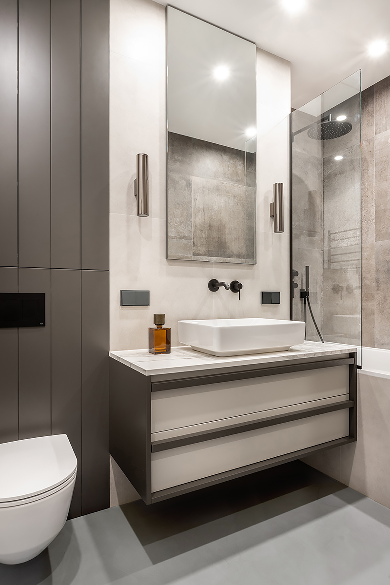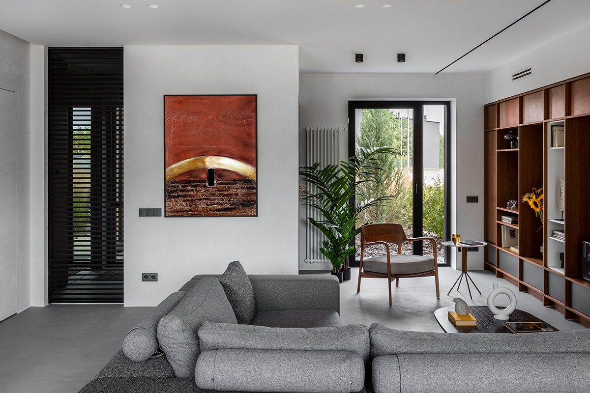 Modern minimalism as a basis for unusual, expressive art objects and author’s painting. This is what determined the main style of the living space. The concept was based on such materials as concrete and plaster, natural wood and stone. The interior had to be as natural as possible, reflecting the architectural image of the residential complex and the beauty of the surrounding nature.