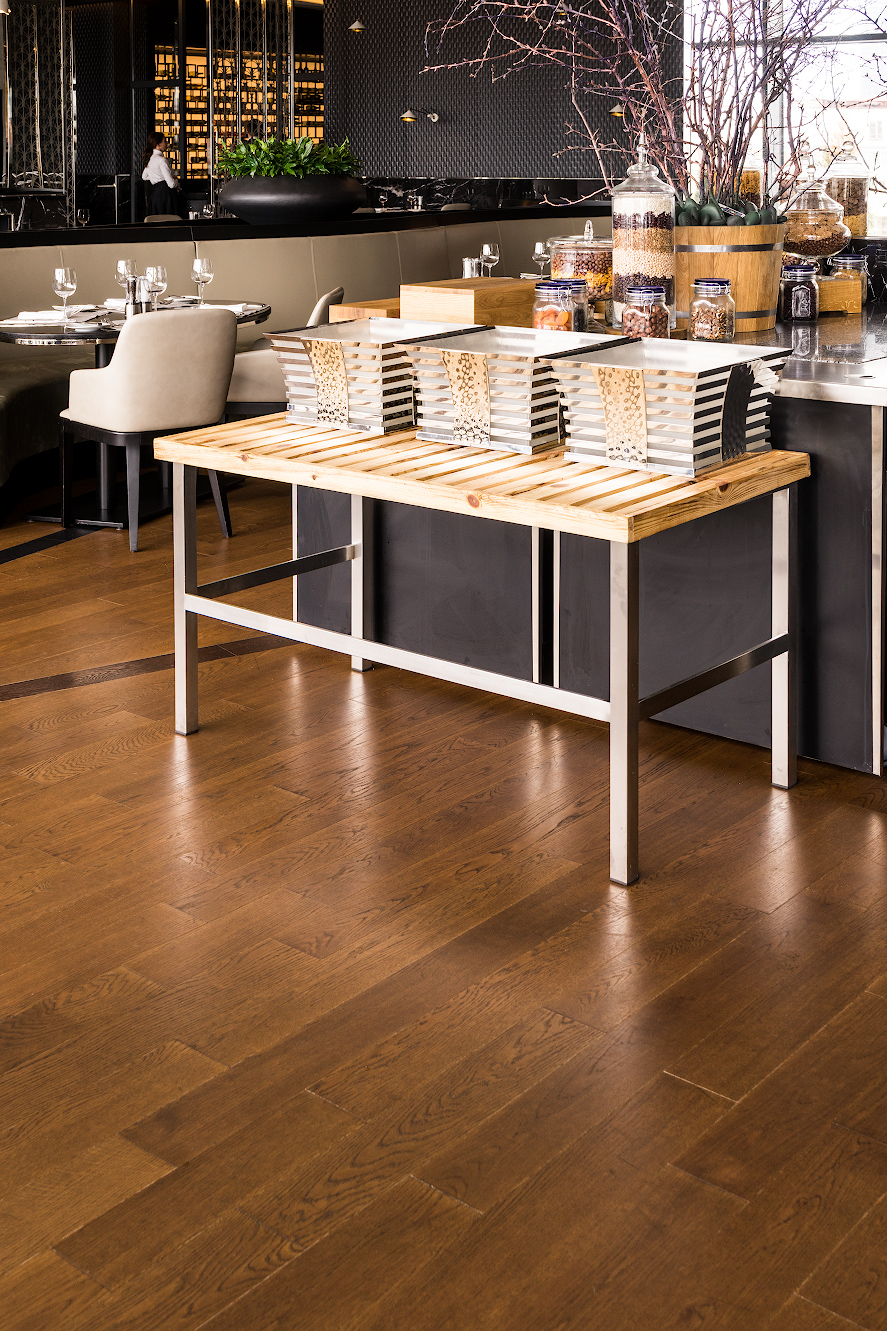 Coswick plank hardwood flooring from Oak Chestnut and Dark chocolate is used in the project.