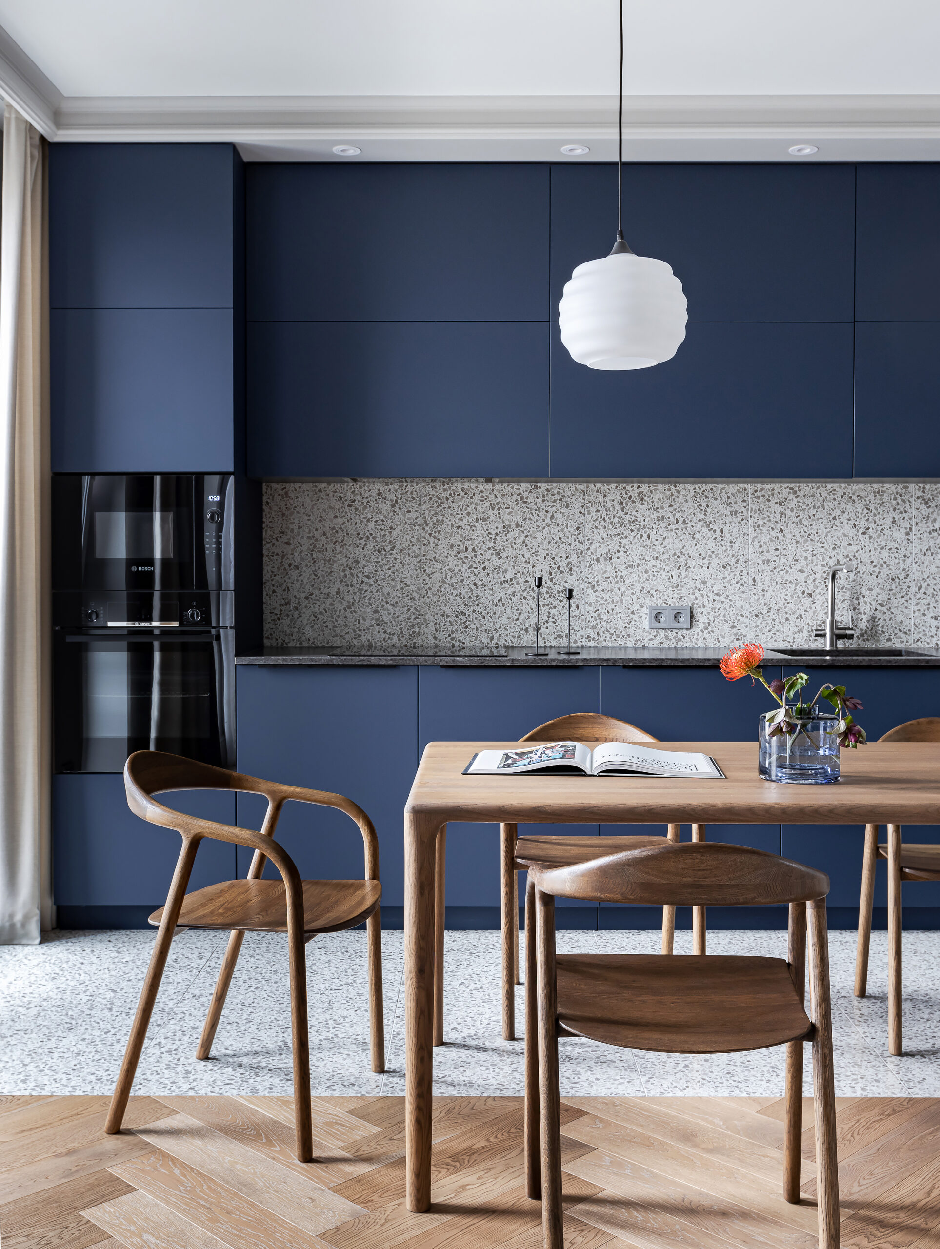 The interior was designed for a young man who wanted to organize and plan in detail the scenario of life in his future apartment. Neat, pedantic, structured and penetrating in every detail of the work. Of the special wishes, the customer highlighted the blue color and modern classics, since he is close to conservatism, a clear organization of life and space, and the understanding that everything is in its place.