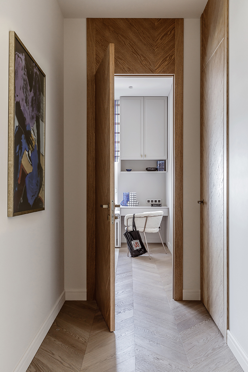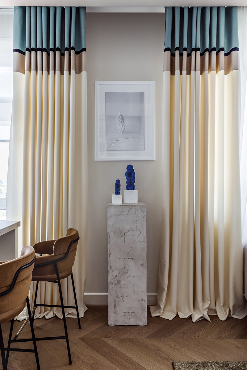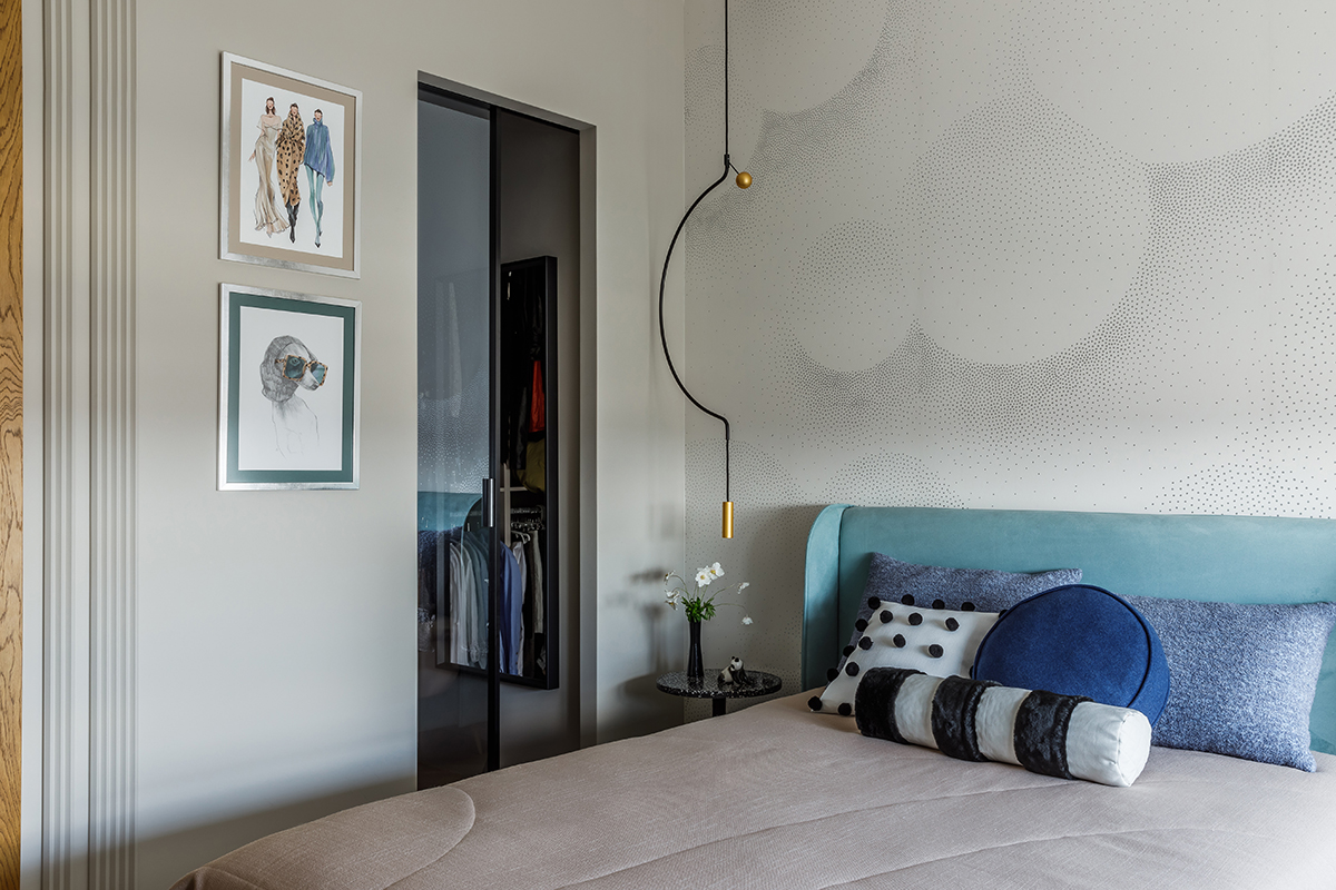 The interior is filled with air and light, the pleasant shade of the walls goes to the ceiling, envelops and hugs, helps to relax after a hard day, and color accents cheer up and saturate with energy.