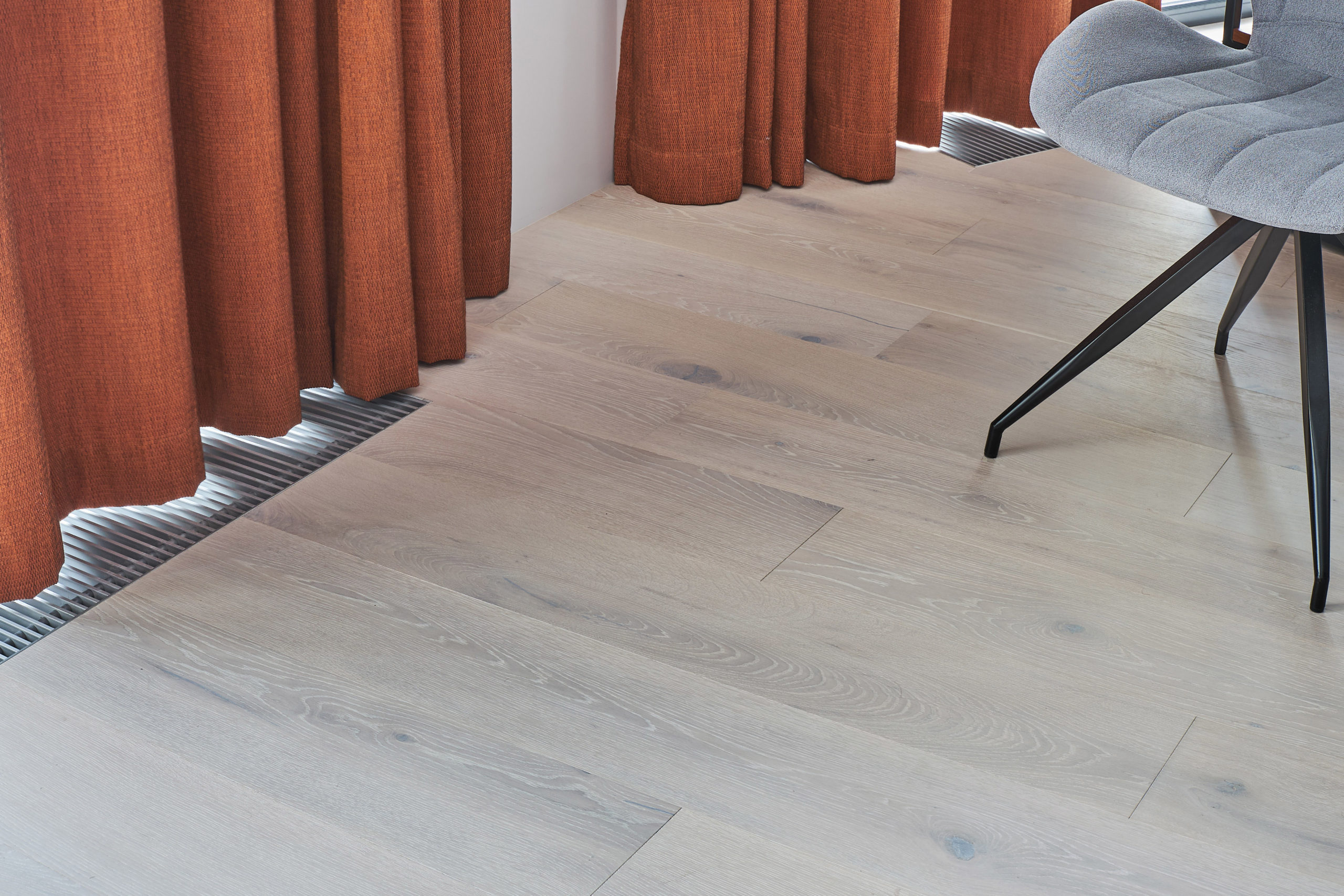 The project used plank hardwood flooring Coswick Alpine oak, Silk Oil ultra-matte.