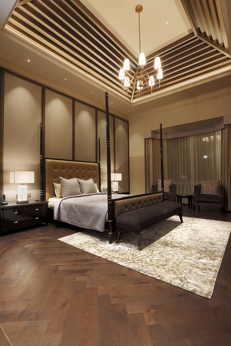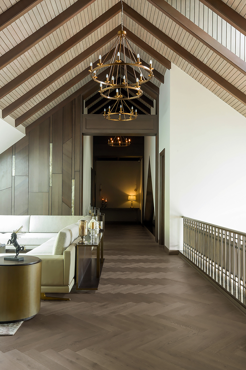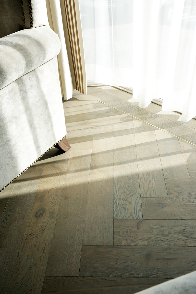 Coswick Chambord, Rocky Reef and Milk Chocolate herringbone hardwood flooring was used in the project.