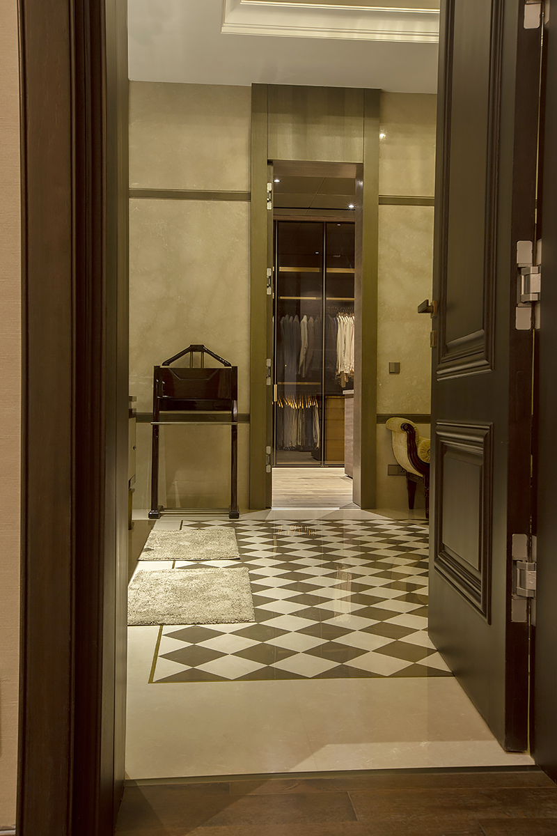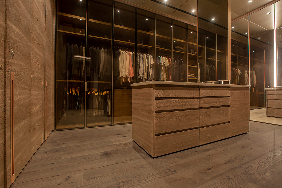 The unusual feature of this project is that the architect managed to combine the tastes and wishes of three generations of people living under the same roof. The main objective of the project was to preserve the effect of the continuity of family values in the broad sense of the word and to convey through the elements of design what unites them and what makes them individual. Despite the predominance of elements inherent in the style of modern, it was possible to create warmth and comfort in the rooms due to the use of wood, both on the ceiling, walls, such as wardrobe fully lined and hardwood flooring.