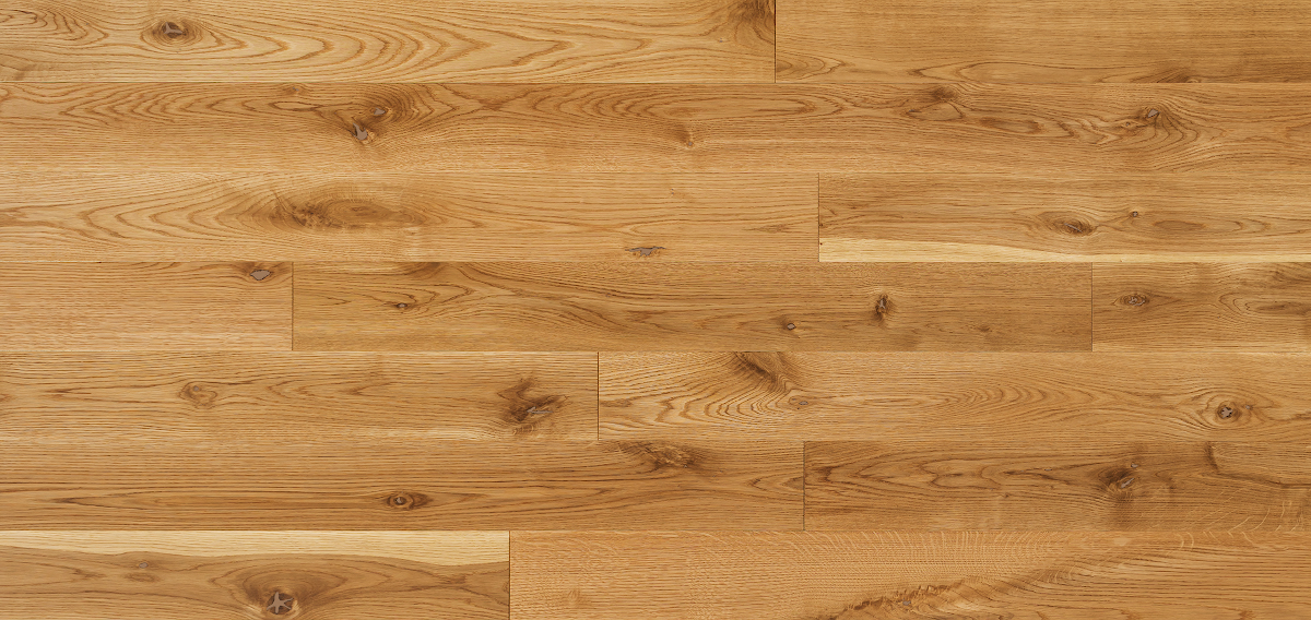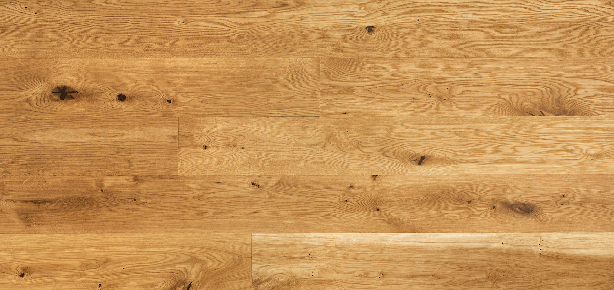 No limits on colour variation. Restored knots, contrasting sapwood, medullary spots, swirl grain and bore holes allowed. Special surfacing technology highlights knots and other irregularities to bring out the natural beauty and uniqueness of oak grain texture.